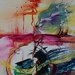 I followed my own advice, started from a little, detailed black figure on my canvas, and changed scales, movement, color and started to use bigger brushstrokes, way more water and created space around the figure. Then I worked my way from that place…